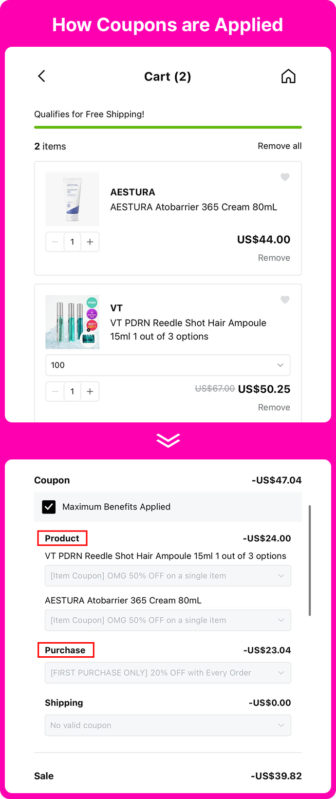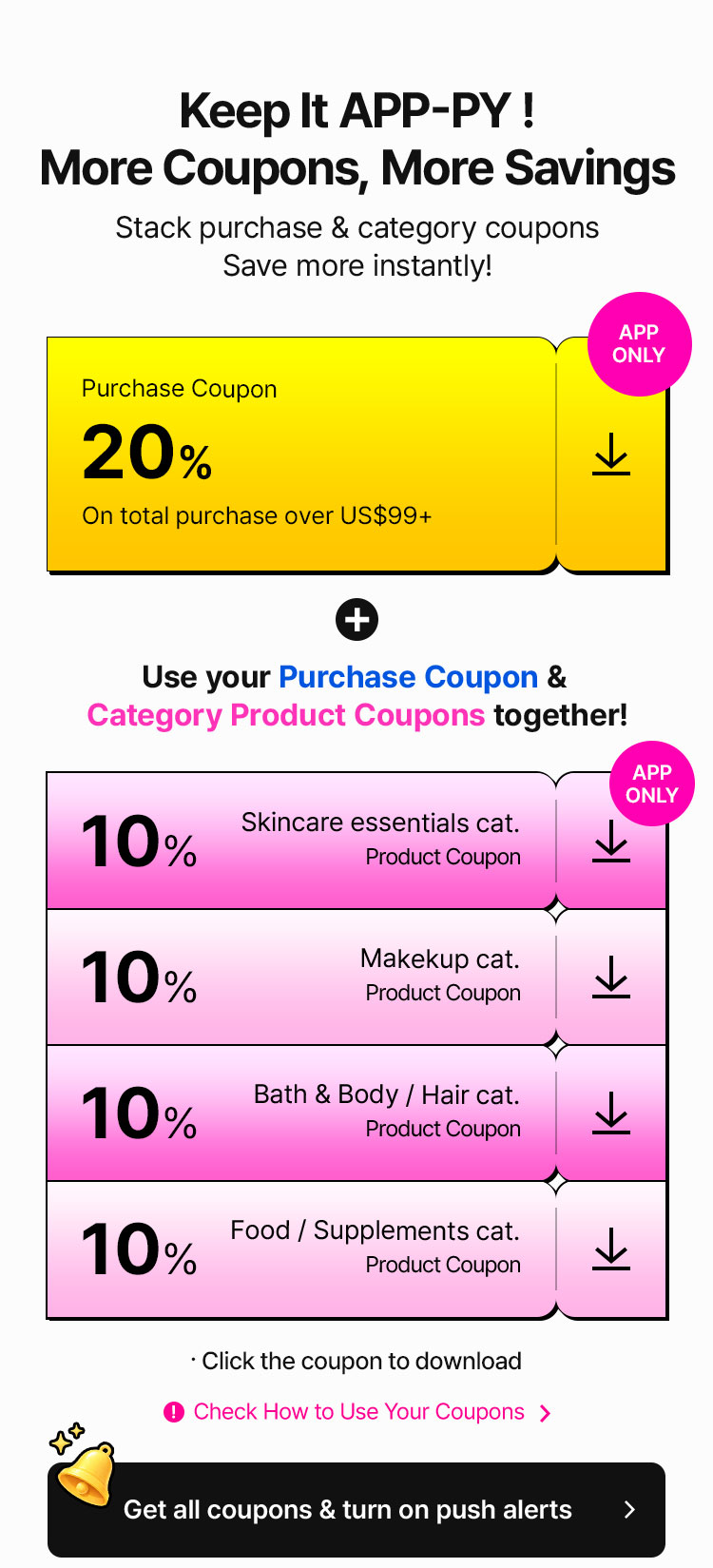 - Exclusions apply to certain brands : KPOP, Tovegan, La'dor, NACIFIC, Medipeel, and goodal single sheet masks.