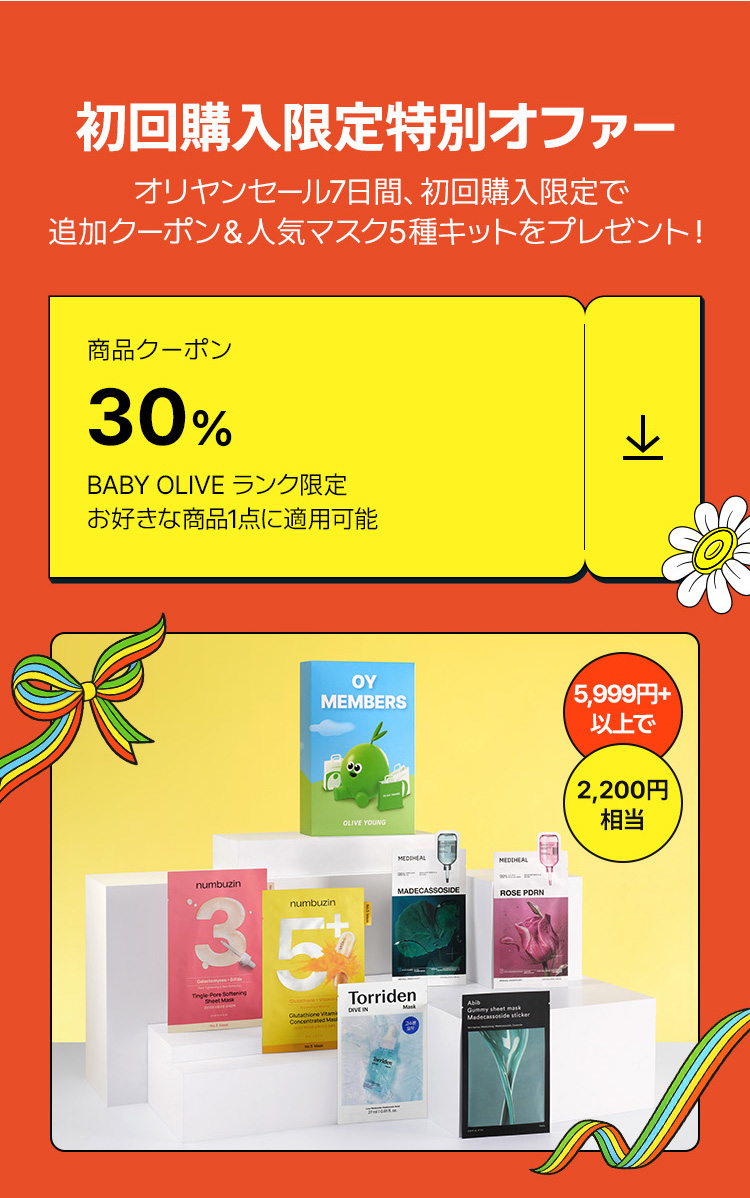 -初回購入者専用クーポンは商品クーポンであり、BABY OLIVE会員限定で発行および使用が可能です。(最大割引 $5)