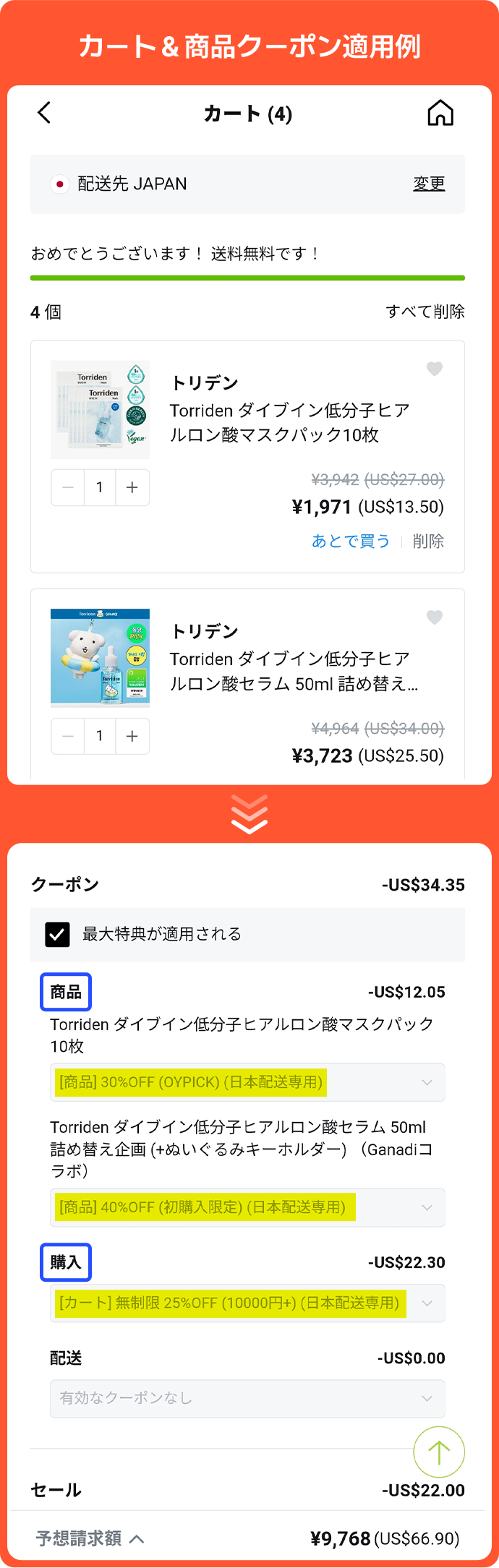 ※ ダウンロードされたクーポンは、カートページで自動的に適用されます。