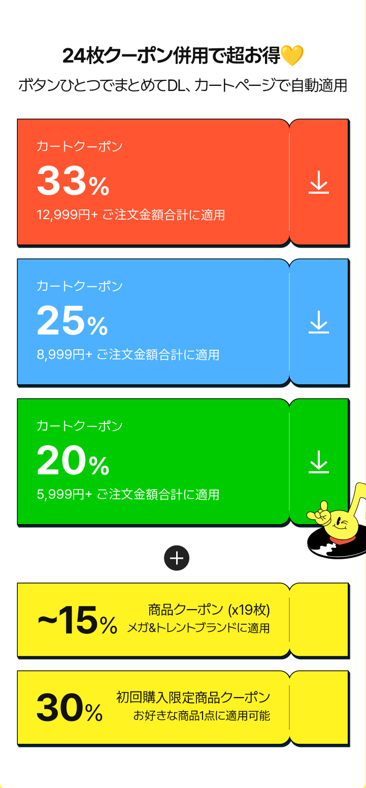 ㄴMEGA(7枚) / TREND(12枚)は商品クーポンです。ブランド別の割引率/額は「MY ACCOUNT > COUPON」にてご確認ください。