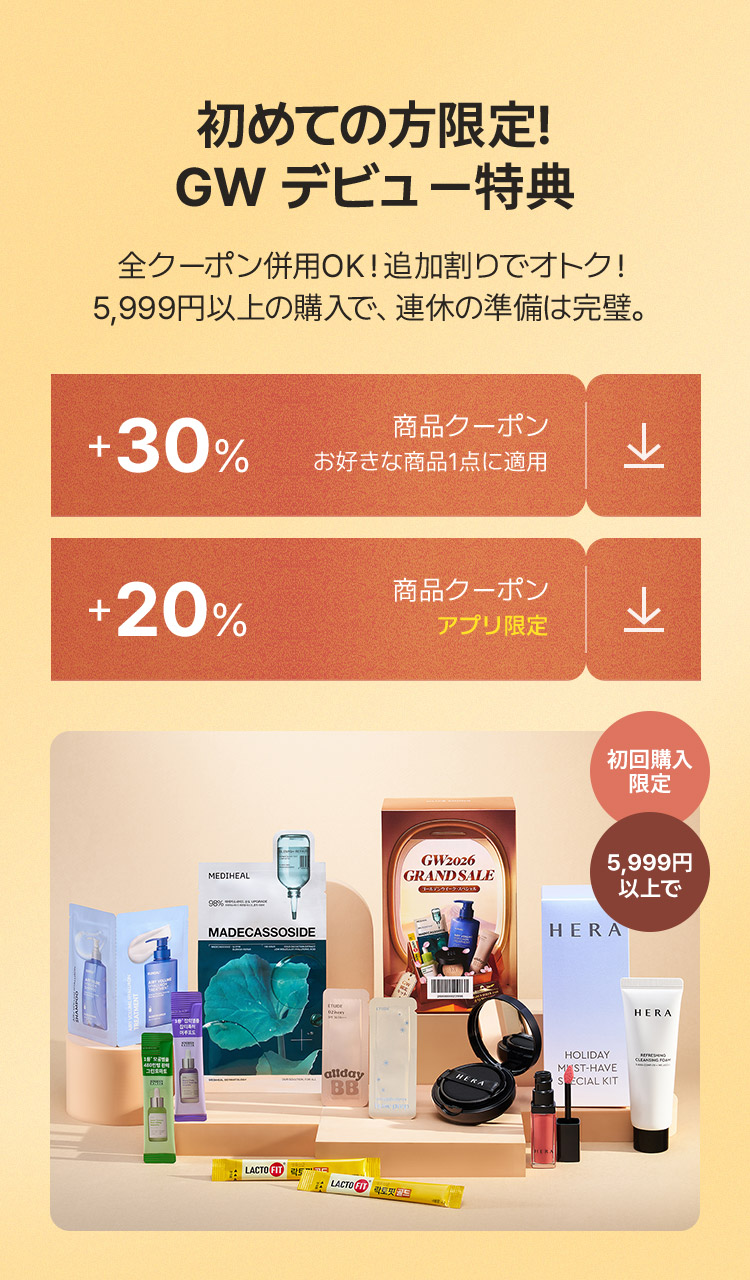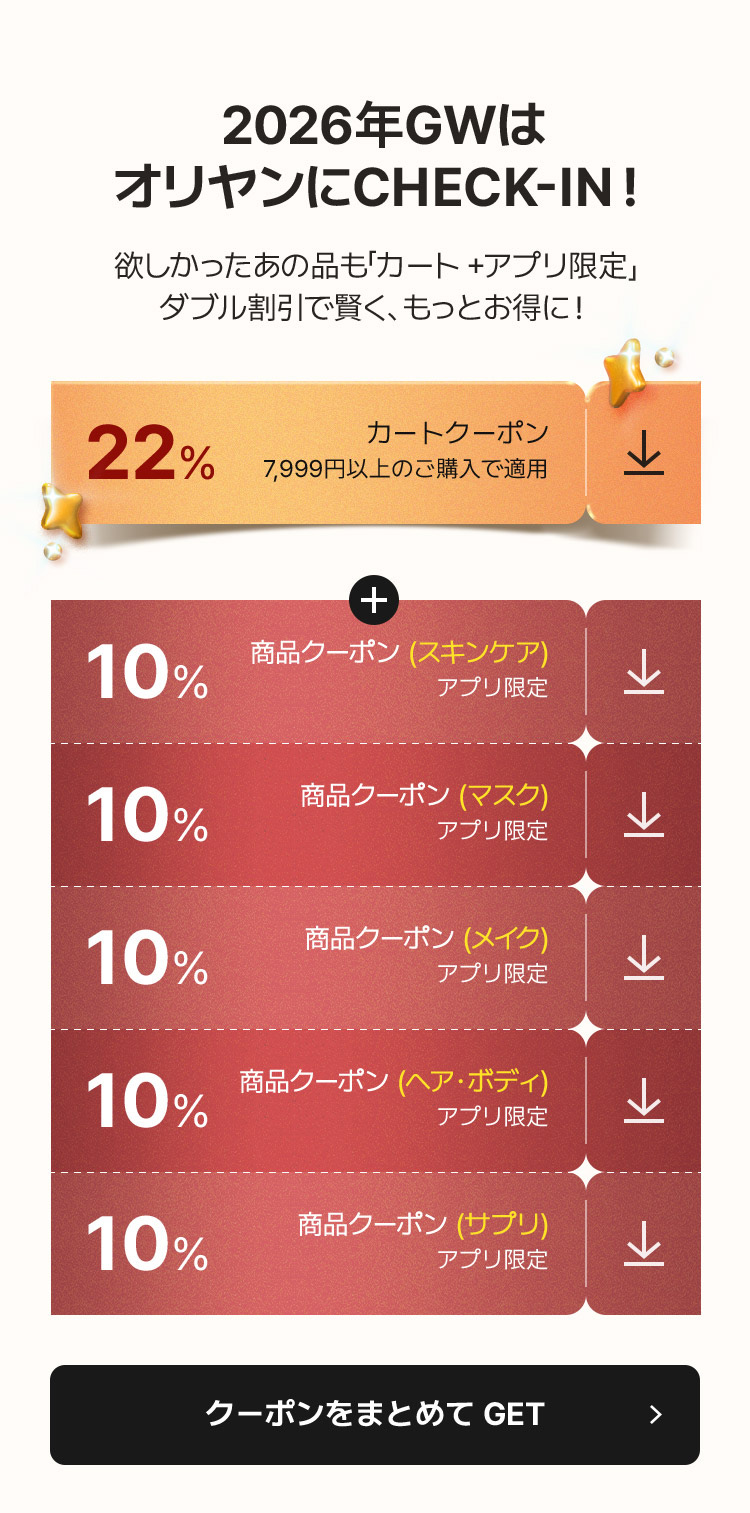 *カートクーポンおよび商品クーポンは、本プロモーションページでダウンロード後、カートページにて自動適用されます。