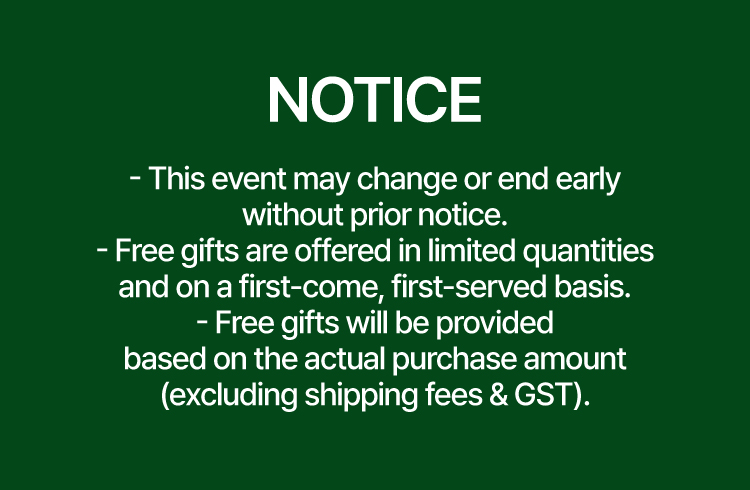 -Free gift will be offered based on your ACTUAL PURCHASE AMOUNT. (Excluding Shipping Fee & GST)