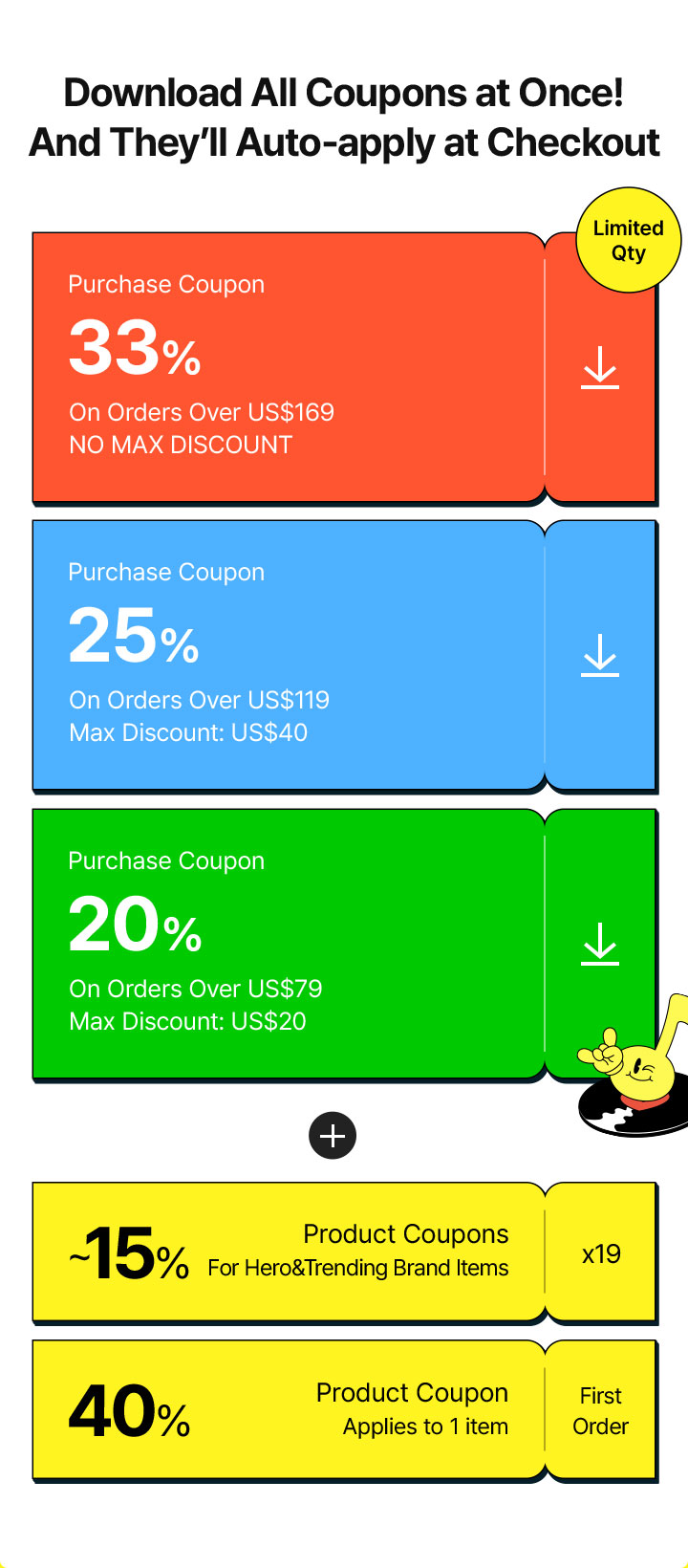 - The 25% OFF Purchase Coupon applies to orders of US$119 or more, with a maximum discount of US$40.