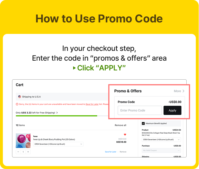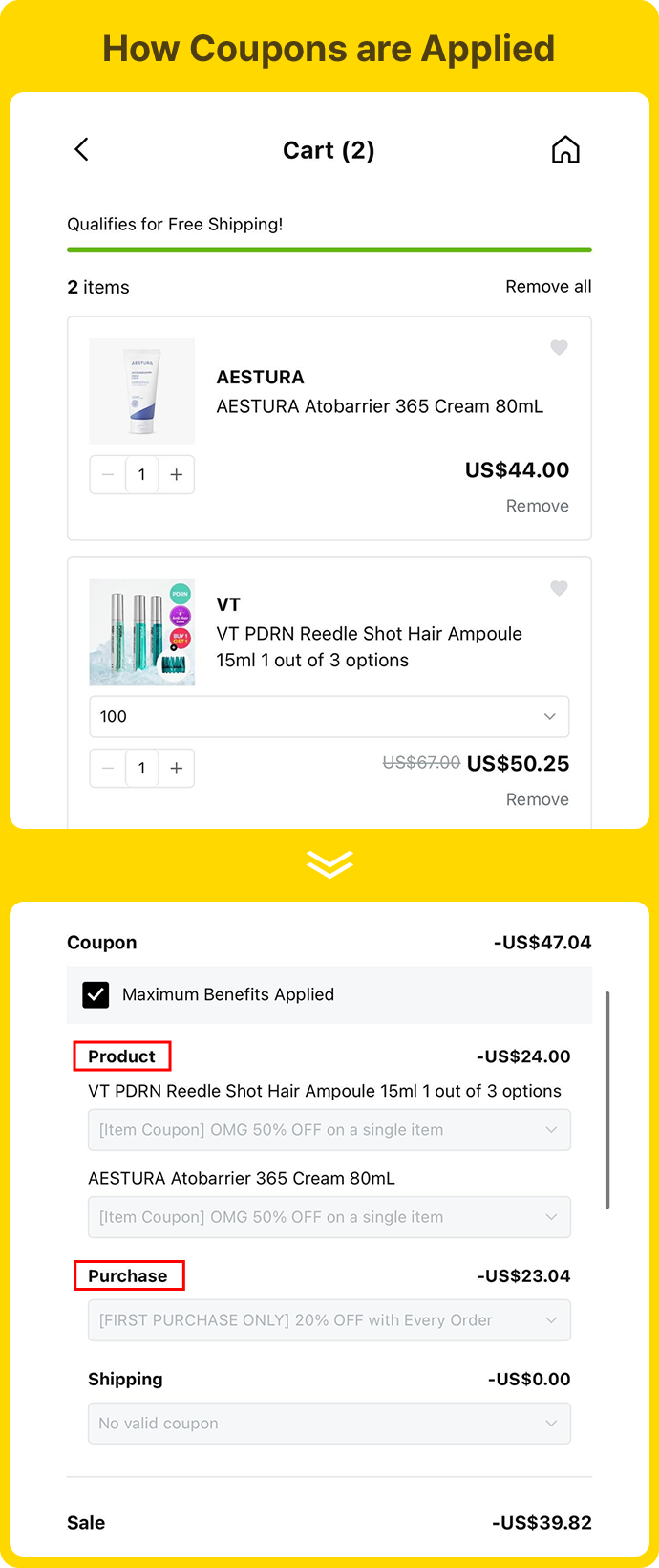 - Each purchase coupon applies to the total purchase once the order exceeds the required threshold, except for the following brands and items: Tovegan, La'dor, Missha, Medipeel, Teoandthe, UNOVE, Goodal single sheet masks, and K-POP.