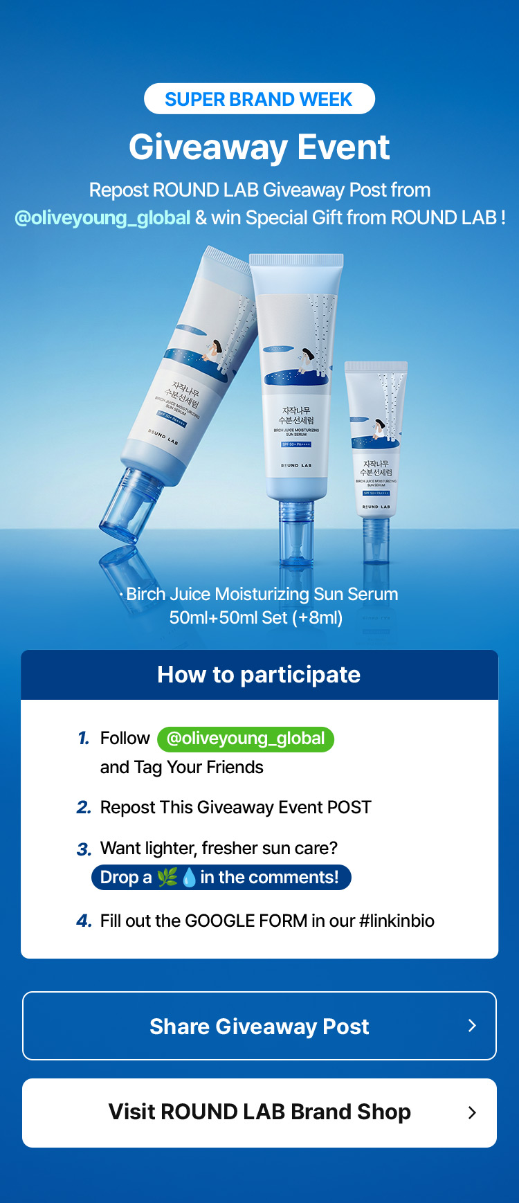 Giveaway Event Repost ROUND LAB Giveaway Post from @oliveyoung_global & win Special Gift from ROUND LAB ! How to participate